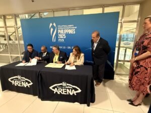 شهدت العاصمة الفلبينية اليوم، وعلى هامش بطولة العالم للكرة الطائرة، توقيع اتفاقية شراكة وتعاون بين الاتحاد الدولي للكرة الطائرة والاتحاد العربي للكرة الطائرة، تهدف إلى اعتماد البطولات العربية وتنظيمها بشكل رسمي تحت إشراف مشترك، بما يعزز مكانة الكرة الطائرة العربية ويمنحها اعترافاً دولياً أوسع. وقد حضر مراسم التوقيع كل من رئيس الاتحاد الدولي فابيو أزديڤو، والنائب الأول للرئيس مارتي هوفيز، ومن الجانب العربي الشيخ علي آل خليفة رئيس الاتحاد العربي، والأميرة آية بنت الفيصل عضو مجلس إدارة الاتحاد الدولي، و بشرى حجيج نائبة رئيس الاتحاد الدولي ونائبة رئيس الاتحاد العربي.