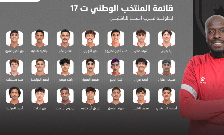 أعلن الجهاز الفني للمنتخب الوطني ت17 بقيادة المدرب خالد سعد، قائمة ضمت 23 لاعباً للمشاركة في بطولة اتحاد غرب آسيا للناشئين، والتي يستضيفها الاتحاد الأردني خلال الفترة من 27 تشرين الأول ولغاية 4 تشرين الثاني المقبل في مدينة العقبة.