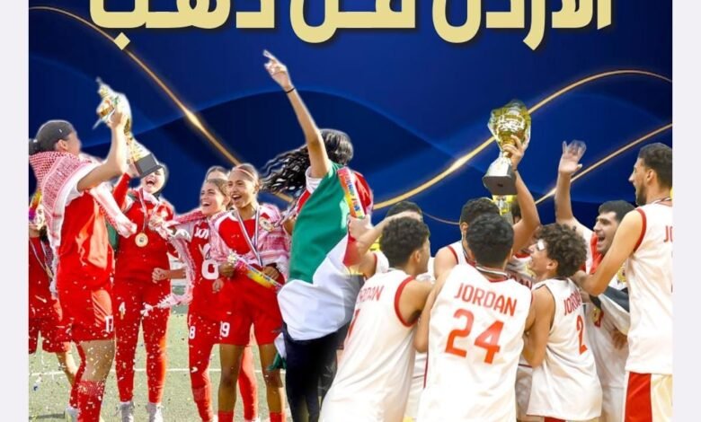 وفي كرة السلة توج الأردن بذهبية وفضية مقابل ذهبية لمصر وفضية وبروزنية للأردن “ب” وبرونزية للسعودية، وحصل الأردن ذهبيتين في خماسي كرة القدم وفضية للمنتخب العماني وآخرى للأردن “ب”، ونال ميدالية برونزية كل من ليبيا والسعودية.