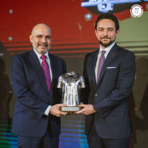 كما قدم سمو الأمير علي بن الحسين درعا تكريميا لجلالة الملك عبدالله الثاني ابن الحسين المعظم، وسمو الأمير الحسين بن عبدالله الثاني، ولي العهد، تقديرا لجهودهما في دعم وإثراء مسيرة كرة القدم الأردنية.