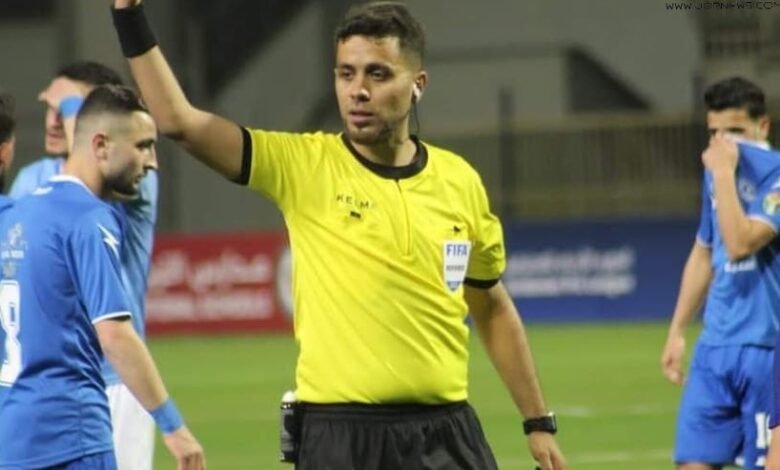 أحمد فيصل للساحة، الحكام المساعدين صابرين العبادي، محمد محمود، ومعاذ عبدالسلام رابعًا.